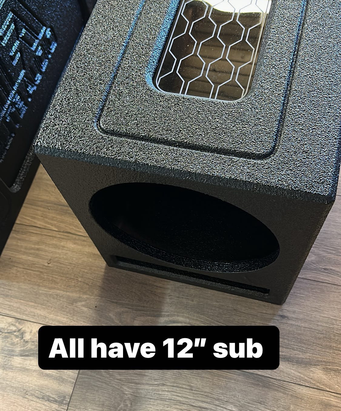 Fits a pair of 6.5 Spakers , a pair of 3.75 tweeters & 12” subwoofer . Box is PORTED